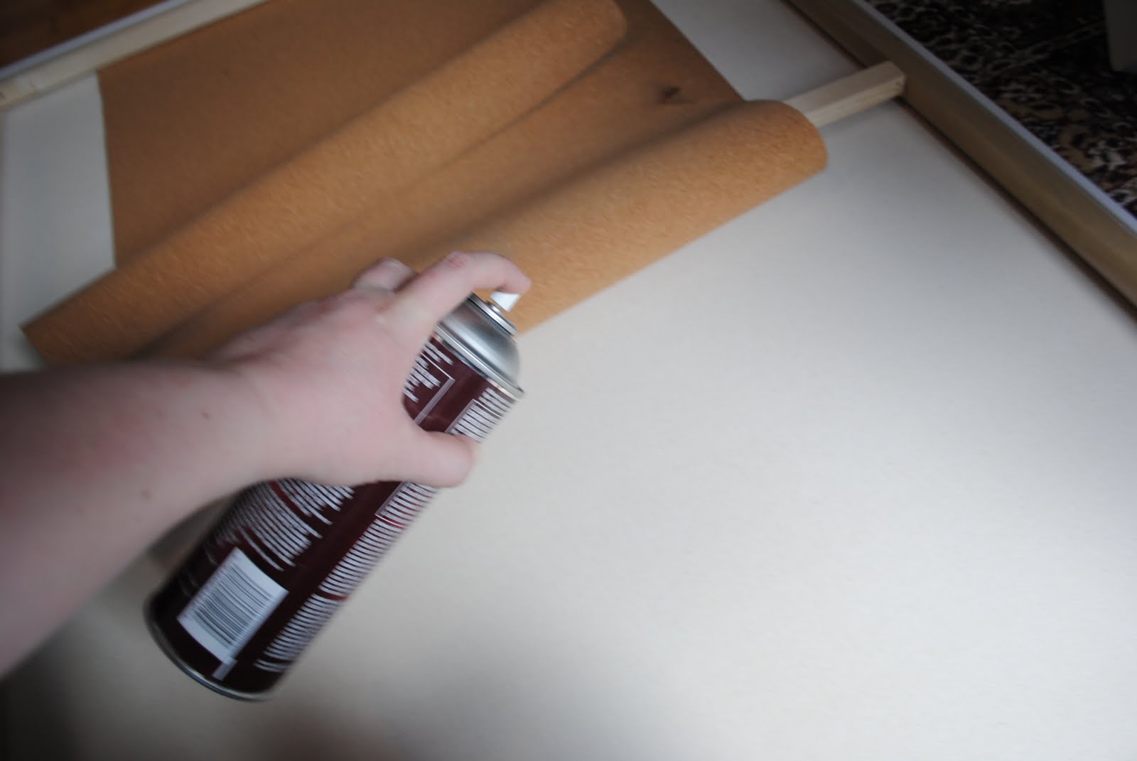 I bought a large canvas and used that as my background. Then, I used a spray adhesive to attach the cork roll to the back of the canvas.