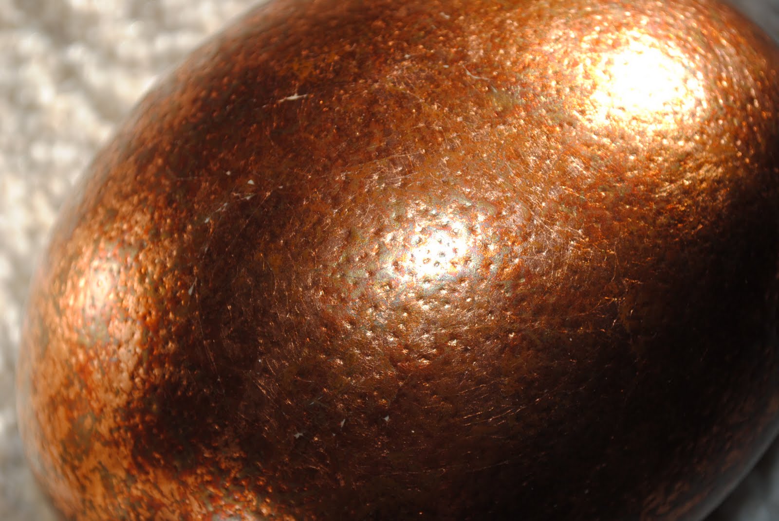 All you need are some silver and gold leaf sheets and a foam brush or toothbrush. First, blow out your egg, wash it and dry it. Take one leaf at a time and flatten them down on the surface of the egg with the toothbrush. After the surface of the egg is covered, you can take a cotton ball and polish the metal to make it shine. You could apply a layer of varnish if you wanted. It will make the egg smoother and shinier. The egg below does not have a layer of varnish, but the other ones do.