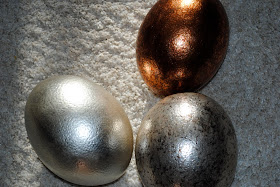 I think they are beautiful. And you can make your own gorgeous gold and silver eggs. The eggs in the picture are ostrich eggs, but you can use regular eggs as well.