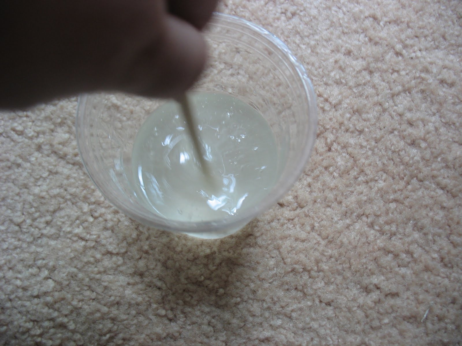5. Prepare your varnish according to the instructions. Pour an equal amount of each into a cup. Use a stick to stir for a couple of minutes until the mixture becomes milky looking.