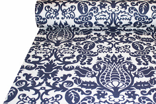 The fabric that I decided to use (after much debate and consideration) was Robert Allen's Coral Coast in navy fabric.