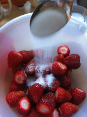 Add two tablespoons of sugar. (You might need to add more sugar later on, depending on how sweet your strawberries are. I ended up adding three more tablespoons, since it wasn't sweet at all.)