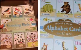 I absolutely adore these wall art cards. One is for numbers and the other for the alphabet. The pictures are gorgeous and the colors are stunning. You could frame these cards (like they did in the picture above on the left) or you could display them on a picture ledge. Kids will love these.