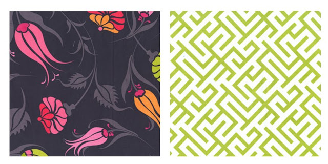 I love the dark background of the fabric, but bright colors of the Turkish Garden. I chose to pair it up with Corridors White. I figured the green in Corridors White can be found in the flowers of the other fabric. What do you think? Does it work?